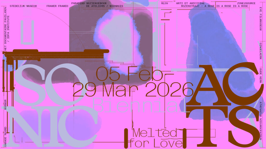 Guided by the theme Melted for Love, the programme explores the power of sound to shape memory, body, land and community in a world marked by ecological and social flux. Melted for Love seeks to animate closeness and friendship. Rather than seeing strangers everywhere, it embraces the world as a mesh of souls. Through interdisciplinary installations, spatial sound performances, talks and presentations, Sonic Acts amplifies communities working in solidarity, exchanging exhaustion for tenderness.