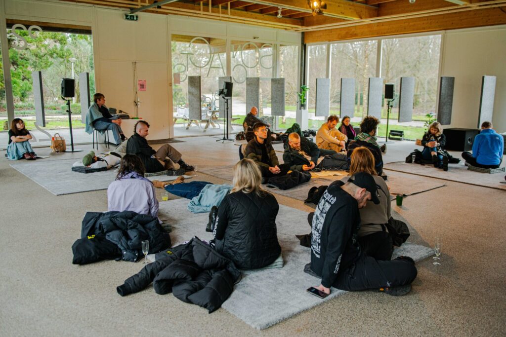 Tucked away in Amstelpark, the Listening Room is an exhibition for multichannel sound works in a dedicated listening environment at the beautiful glass pavillion of Zone2Source.