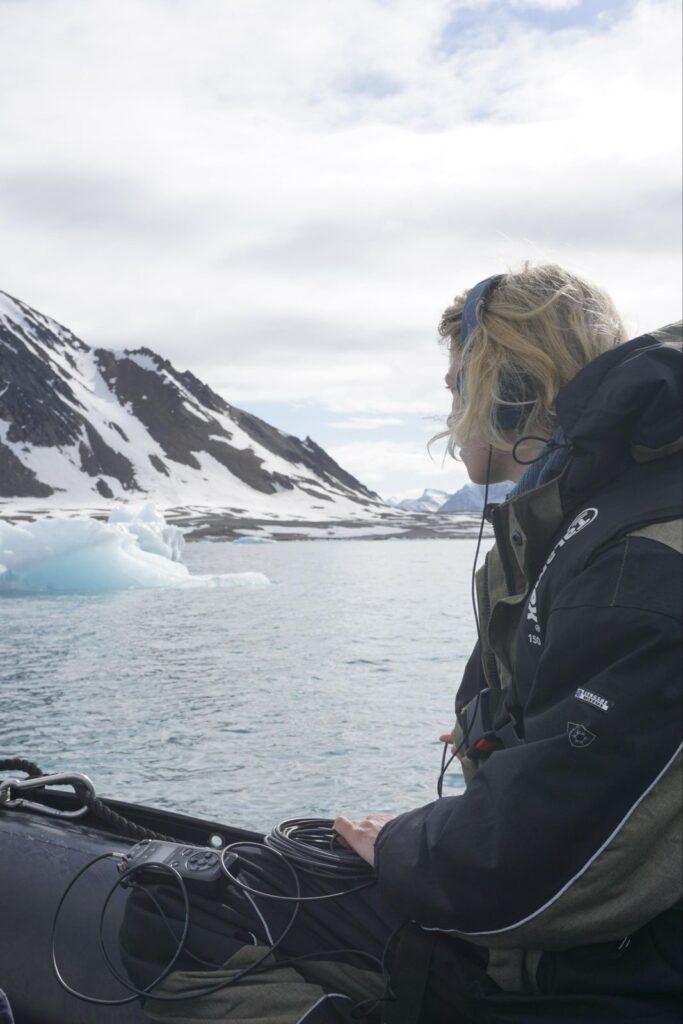 “In June 2024, I went on a residency to Spitsbergen to conduct research into methane emissions resulting from the thawing of the permafrost. My research was documented with sound recordings of methane bubbles, maps of the research area, infrared photographs and meltwater samples. These materials and insights form the archive of my research and residency, which became the basis for An Archive of the Arctic Echoes.”