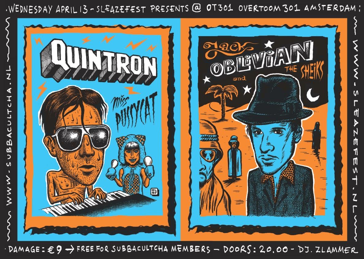 This year is no different and we’re teaming up with our disreputable friends for an unforgettable as much as unforgivable night at OT301 in Amsterdam. The bill for the night includes Robert Rolston, the man behind the New Orleans based noise rock one-man-band that is Quintron. The multi-instrumentalist noise rock master has been performing and patenting his own inventions for over a decade, often performing with his musician/puppeteer wife, Miss Pussycat. A big-gun in the Memphis music scene, Jack “Oblivian” Yarber has been affiliated with Johnny Vomit & The Dry Heaves, The End and The Oblivians to just name a few. On this night he’ll be taking on the stage with The Sheiks.